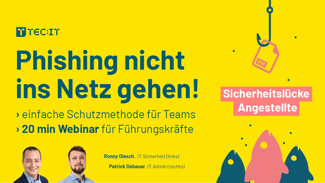 In diesem Webinar erfahren Sie vom IT-Experten Tec:IT eine einfache Schutzmethode, mit der Sie sicherstellen, dass Ihr Unternehmen geschützt ist vor betrügerischen E-Mails.